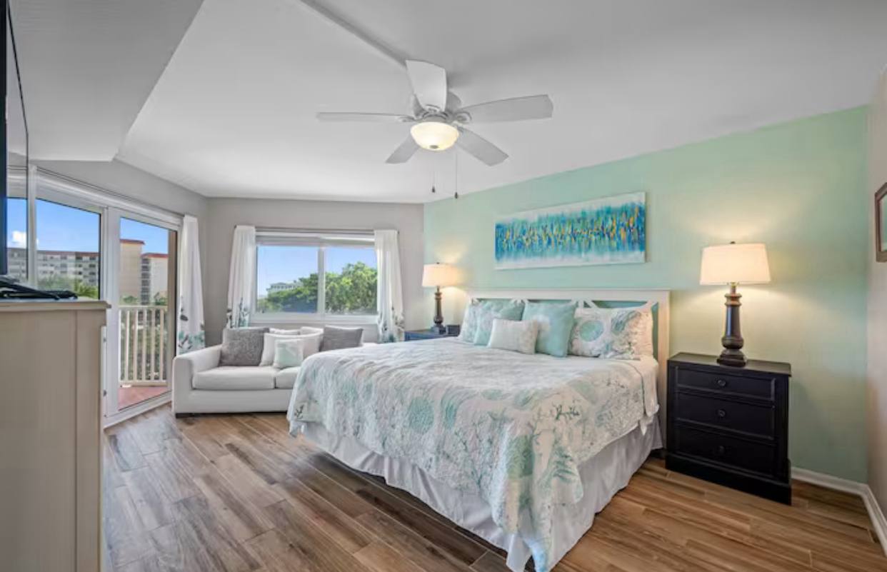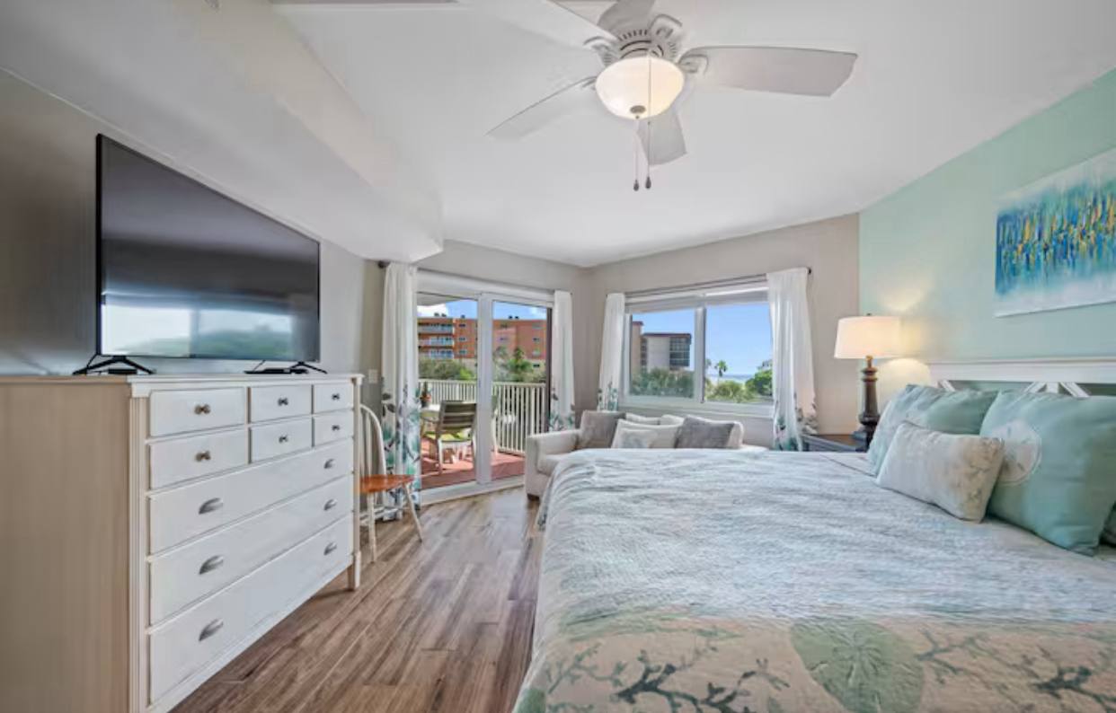 Two Comfortable Bedrooms: The master suite boasts a plush king-size bed, private en-suite bathroom, and direct access to ocean vistas. The second bedroom offers two cozy twin beds or a queen bed, perfect for guests or children, with easy access to the second full bathroom.