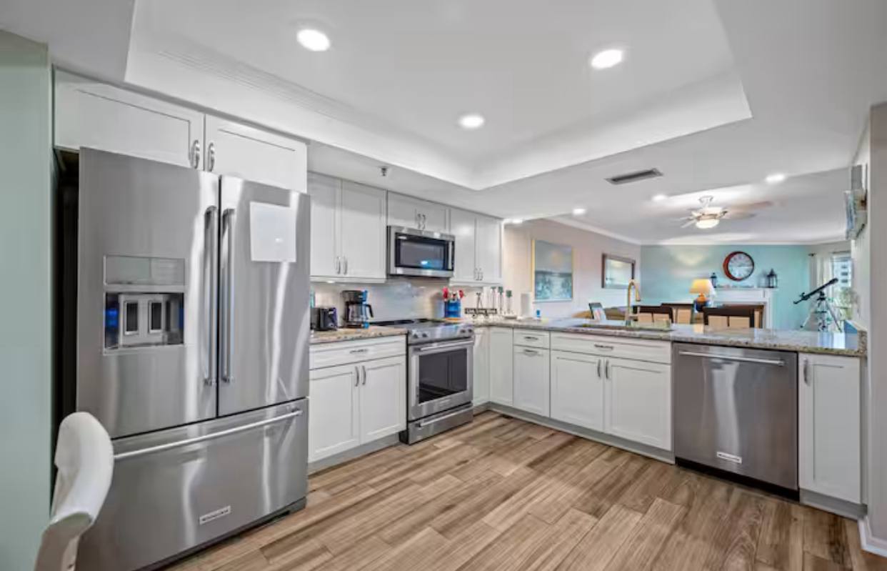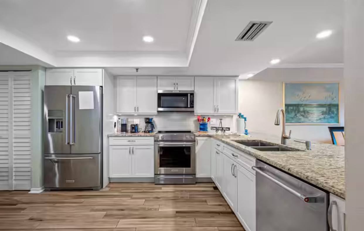 Gourmet Kitchen: Prepare meals with ease in the fully equipped kitchen, featuring stainless steel appliances, granite countertops, and all the essentials for a delightful dining experience.